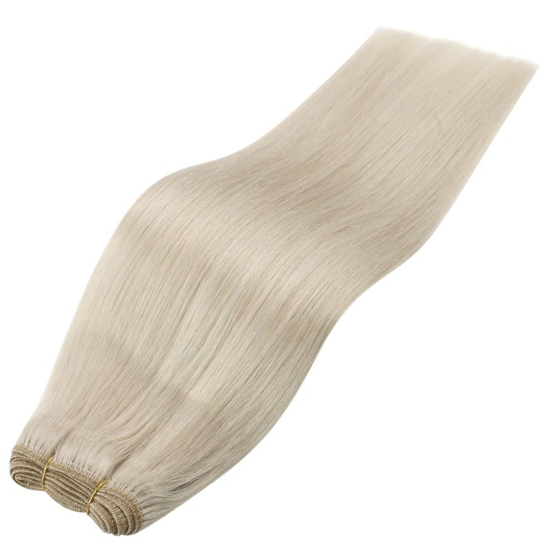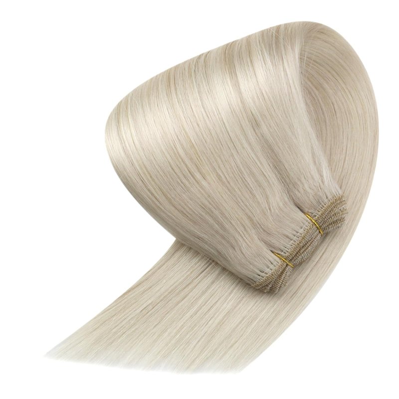 Sunny Hair Extensions Real Human Hair Weft Platinum Blonde Sew in Extensions Human Hair White Blonde Real Hair Extensions Sew in Weft Hair Extensions for Long Hair 22inch 100G