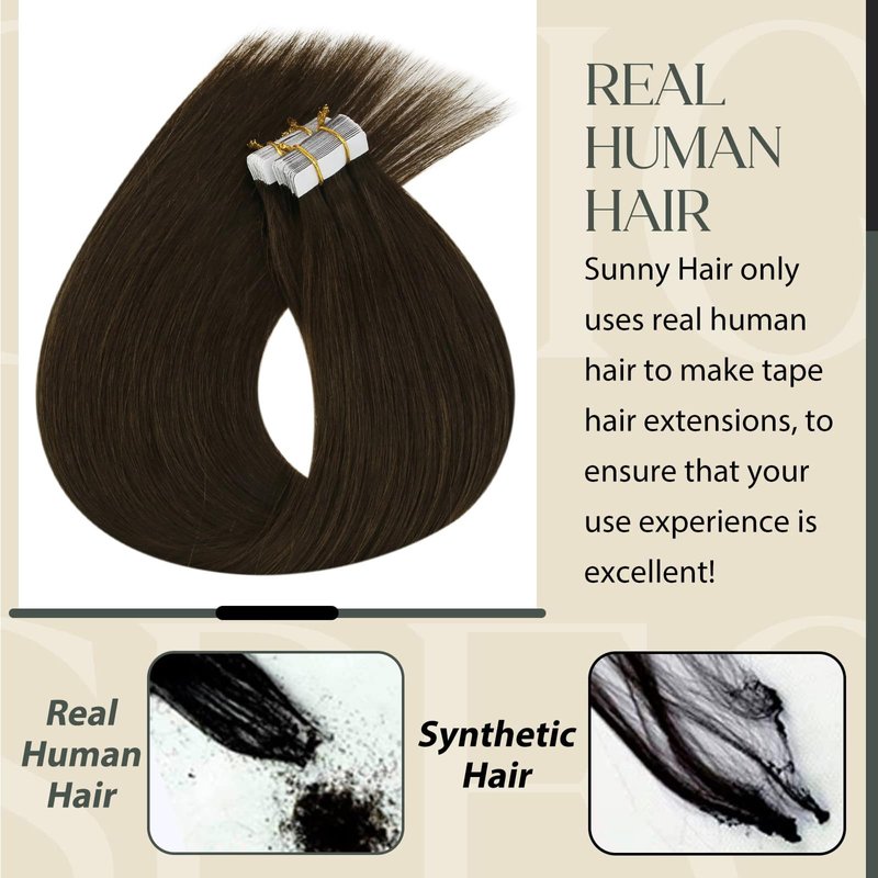 - 3.Unlock your styling creativity with Sunny Hair! All tape in hair extensions is made from real human hair, can achieve smoothness, straightening, curling, and dyeing to dark color. It is the perfect choice for daily wear, beach, party, weddings, graduations or a romantic date night. All the pictures are taken by ourselves under natural light, due to the difference in screen resolution or equipment, there may be a slight color difference.