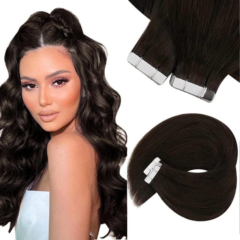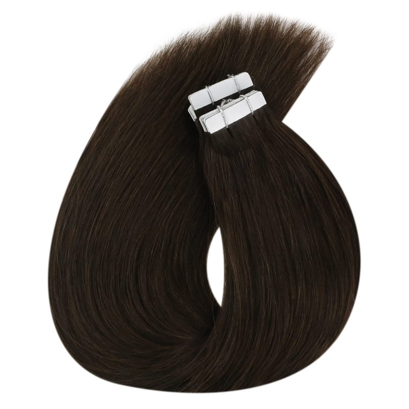 Sunny Hair Tape in Extensions Straight Skin Weft Tape in Hair Extensions Invisible Tape in Hair Extensions Human Hair 20Pcs Hair Extensions Real Human Hair Darkest Brown 18inch