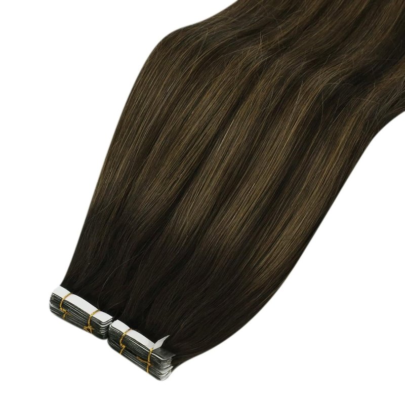 Sunny Hair Tape in Extensions Straight Skin Weft Tape in Hair Extensions Invisible Tape in Hair Extensions Human Hair 20Pcs Hair Extensions Real Human Hair Darkest Brown Balayage Medium Brown 20inch
