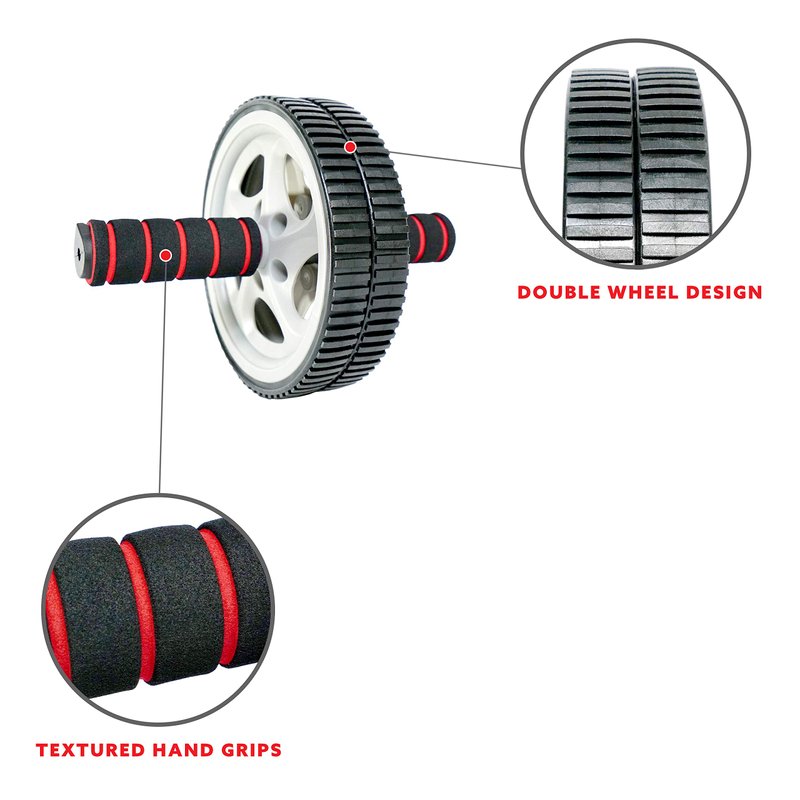 - DOUBLE-WHEEL DESIGN: Wide shaped wheel ensures stability and bears the weight of your entire body. The wheel’s textured surface promotes stability and control. Handles prevent slipping and while reducing hand fatigue.