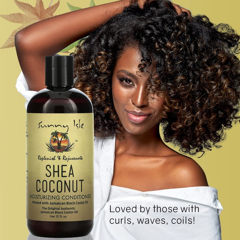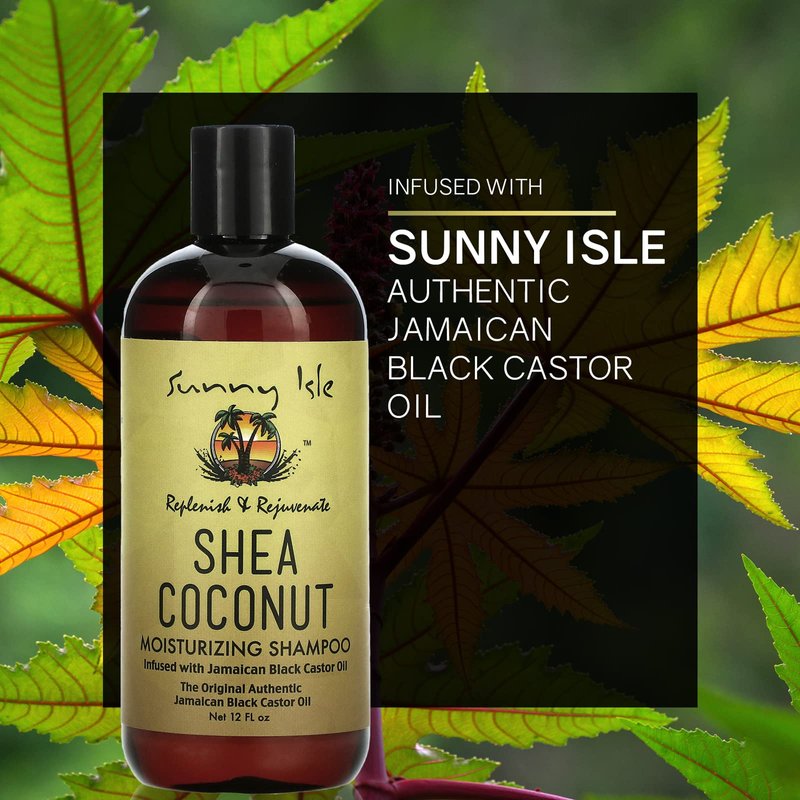 Sunny Isle Shea Coconut Moisturizing Shampoo 12oz | Infused with Jamaican Black Castor Oil | Curly Hair Shampoo | Hydrating for Dry Curls, Waves, Coils | Silicone, Paraben & Sulfate-FREE