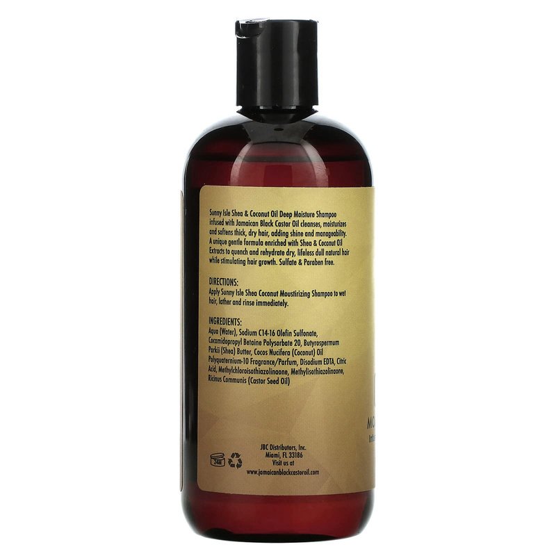 Sunny Isle Shea & Coconut Oil Deep Moisture Shampoo infused with Jamaican Black Castor oil, cleanses and softens thick, dry hair, adding shine and manageability. A unique gentle formula enriched with Shea & Coconut Oil extracts to quench and rehydrate dry scalps while promoting healthy hair growth. Enjoy the lightweight texture and light refreshing shea-coconut scent.