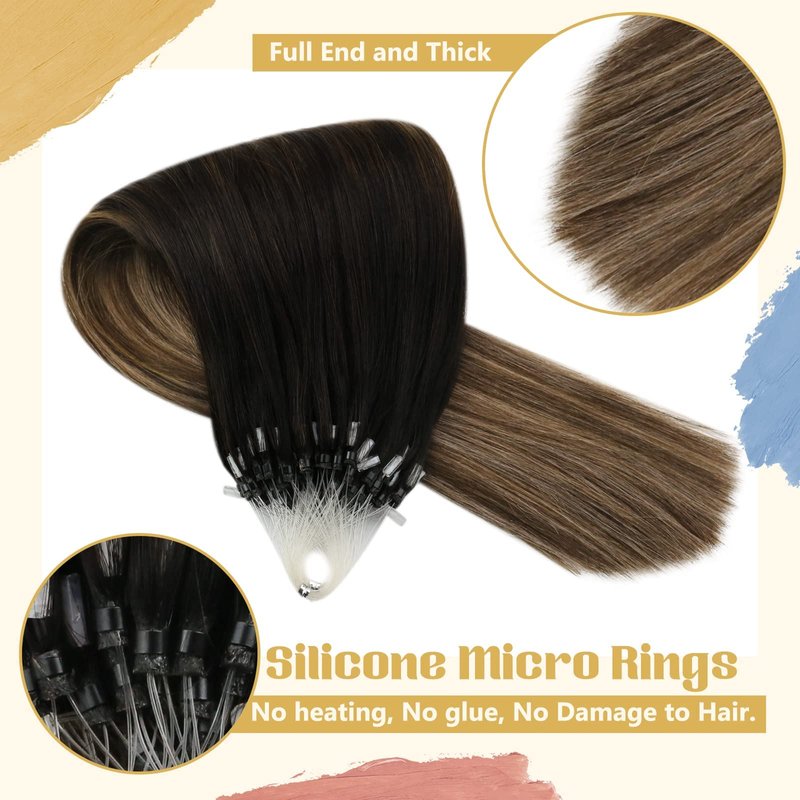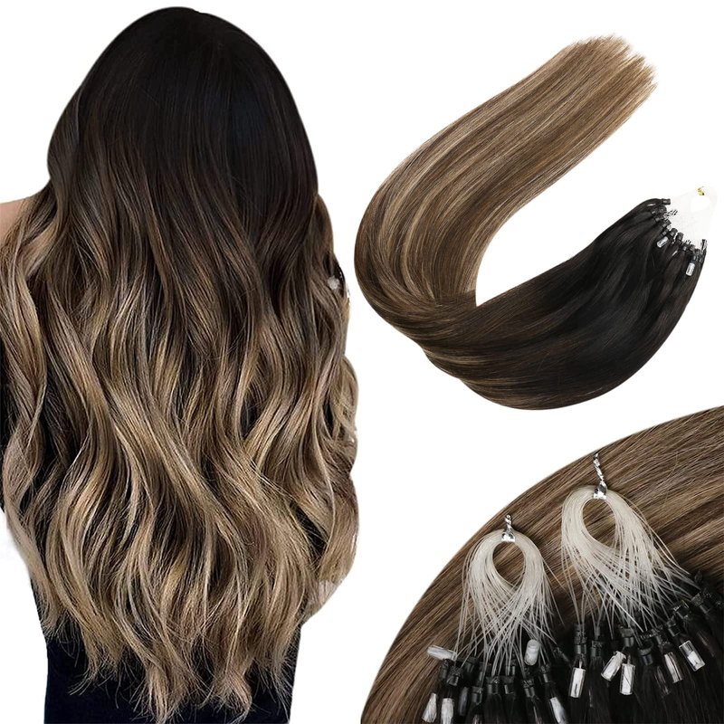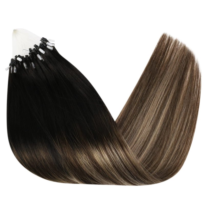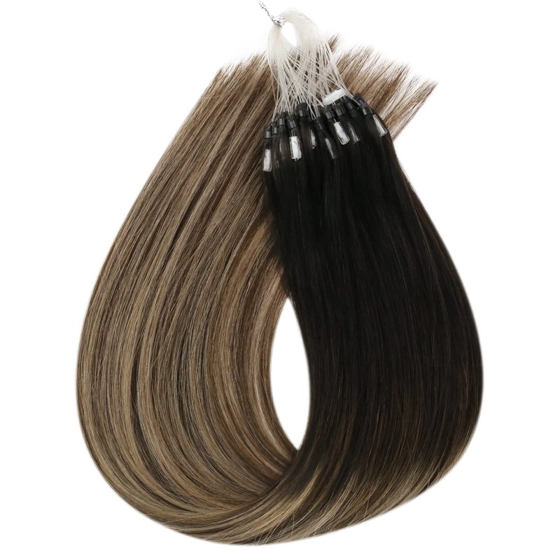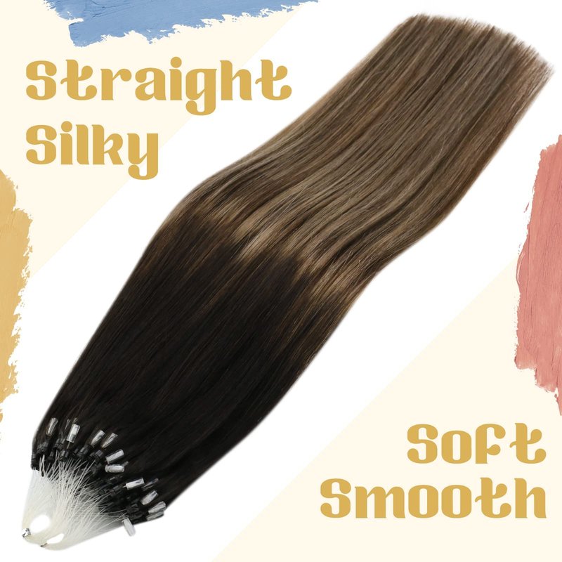 Sunny Micro Hair Extensions Human Hair Black Micro Bead Hair Extensions Human Hair Black Balayage Dark Brown Ombre Medium Ash Blonde Micro Human Hair Extensions Micro Ring Hair Extensions 18inch 50g