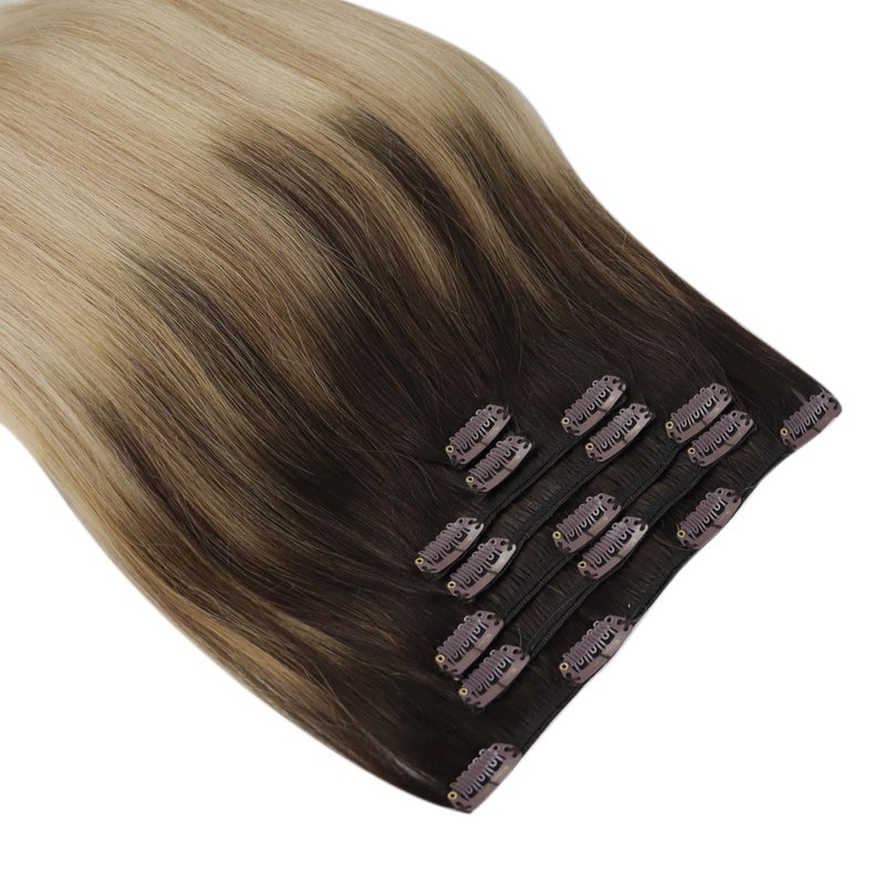 Sunny Ombre Clip in Hair Extensions Real Human Hair Dark Root Hair Extensions Real Human Hair Clip ins Dark Brown to Light Brown Balayage Ash Brown Clip in Extensions Ombre Hair Extensions 120g 16in