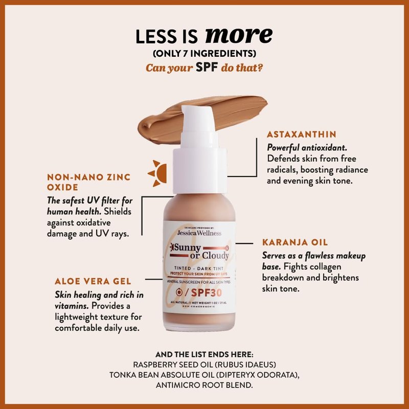 Sunny Or Cloudy 30 SPF Mineral Sunscreen - Non-Nano Zinc Oxide - UVA/UVB Protection (Dark)