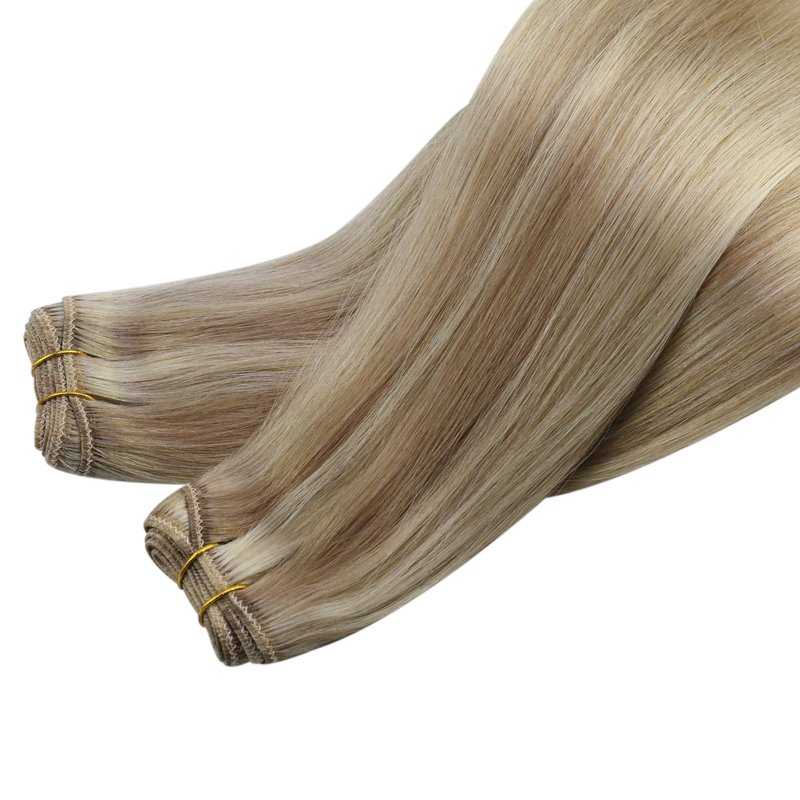 Sunny Sew in Hair Extensions Highlights Weft Human Hair Extensions Blonde Weft Hair Extensions Dark Ash Blonde Highlighted Light Blonde Hair Wefts Human Hair Sew in Blonde 20inch 100g