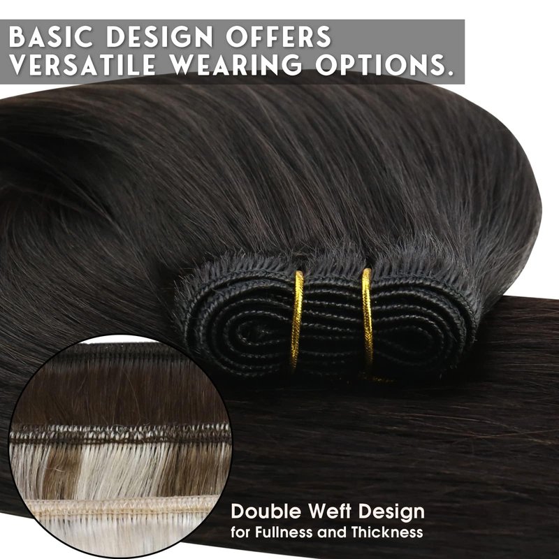- Double Weft Design: Our sew in extensions blend naturally with your hair, using no clips or wires; The double weft design ensures durability; Short hairs at the root of extensions are normal and not a concern