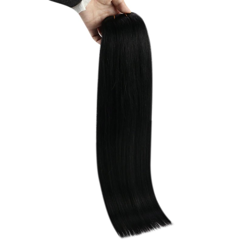Sunny Sew in Hair Extensions Real Human Hair Black for Women Weft Hair Extensions Human Hair Jet Black Sew in Extensions Human Hair Invisible Hair Extensions Weft One Bundle 16Inch 100G
