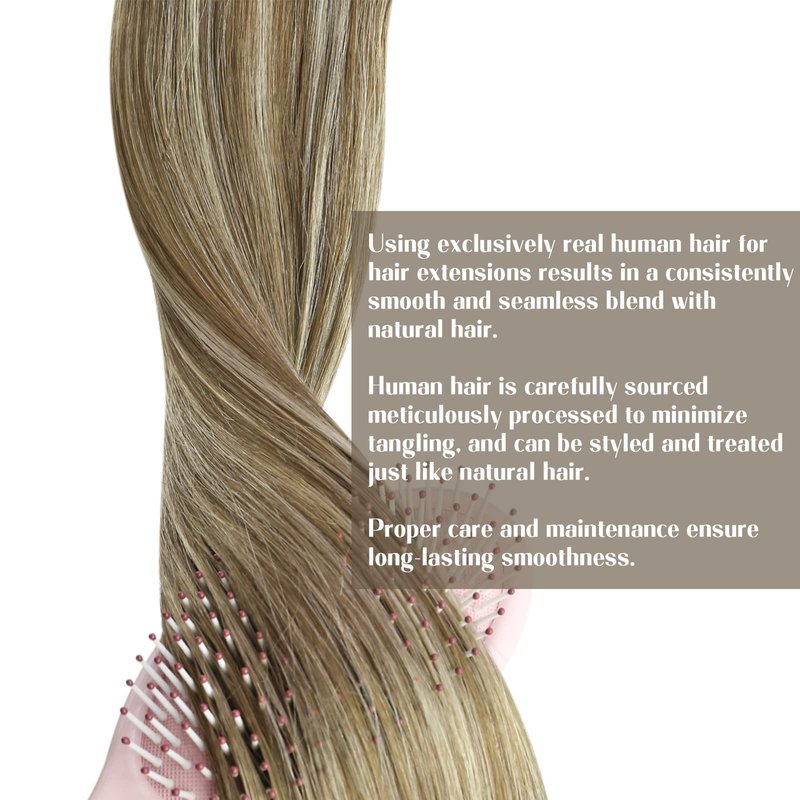- Remy Hair: Sunny Remy weft hair extensions maintain their natural color, soft texture, and styling versatility, deserving the same meticulous care as your own hair; It's recommended to gently comb through your extensions and loosely braid them before bedtime to prevent tangles; When combing, proceed softly to avoid any tugging or pulling that might lead to hair loss; Use a hair mask or essential oil for shine