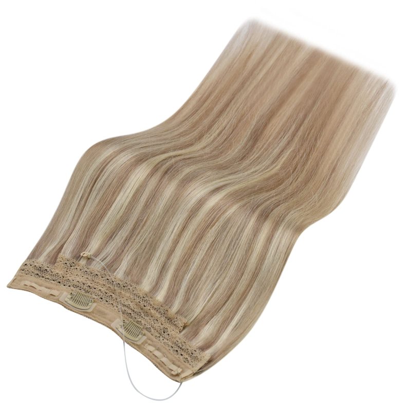Sunny Wire Hair Extensions Blonde Highlights Wire Human Hair Extensions Pastel Pink Blonde Highlight Bleach Blonde Invisible Fish Line Hair Extensions Blonde for Women Hair Extension 80G 12Inch