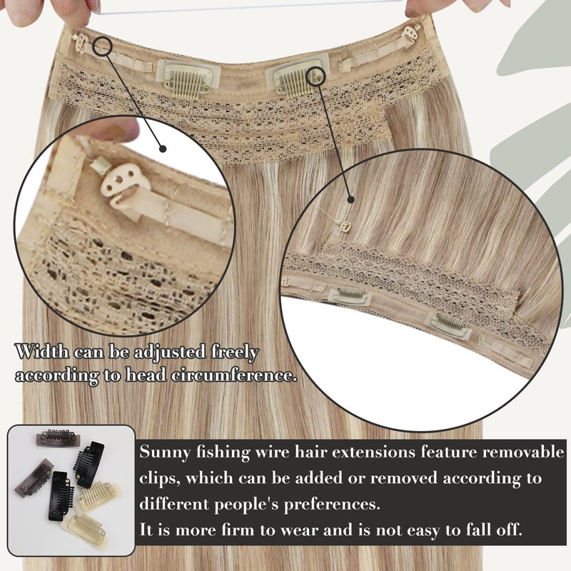 Wire hair extensions human hair is Sunny Hair's New Product with the most affordable price, which is the easiest hair extension to fit and remove with no glue, no weaving. In order to better fix the invisible wire hair extensions and keep it more secure during wearing,we sew some clips on the weft.If you don't need those clips,you could remove them and just use the wire when you wear it.