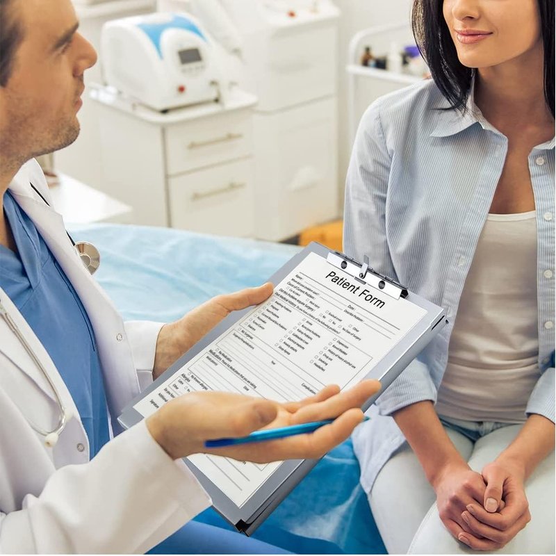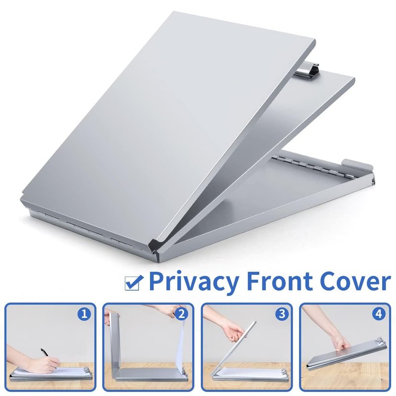 - 【Privacy Cover & Serrated Clip】The top clamp and the locking clip are easy to operate and well constricted. The privacy cover will cover the papers clipped on top. A high-quality clip clamps your memo-size paper sheet tightly, keeps your forms staying, and won't fly away. This aluminum clipboard with a storage top opening for easy provides 3/8 Inch storage.