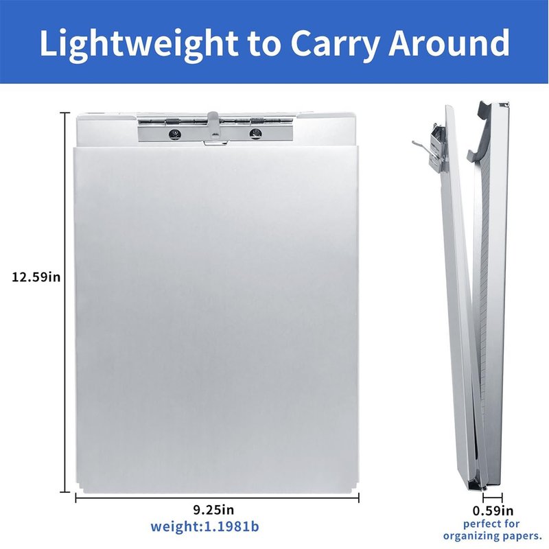 - 【Lightweight & Storage Design】Size: This clipboard is 9.96 inch x 6.18 x 0.98 inch. The Lightweight Metal clipboard with storage only weighs 1.2 pounds which is easy to carry and use wherever you go. If you need safe edges/corners (which won't scratch your arms and car paint) and a lightweight clipboard, this will be perfect for you.