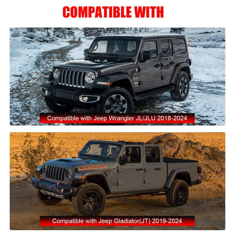 - Custom Fit: SUNPIE Trailer Wiring Harness Kit compatible with Jeep Wrangler JL/JLU Sports, Sport, Rubicon, Sahara, Unlimited Moab, Unlimited Rubicon, Unlimited Sahara, Unlimited Sport, Unlimited Sport S 2018-2024; compatible with Jeep Gladiator JT Altitude, Mojave, Overland, Rubicon, Sport, Sport S 2019-2024.