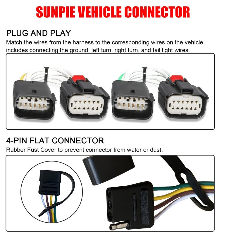 - Sunpie Service: Sunpie provide 3 year warranty for this tow hitch wiring harness, what’s more, we provide 45 days money back and 30 days returns service.