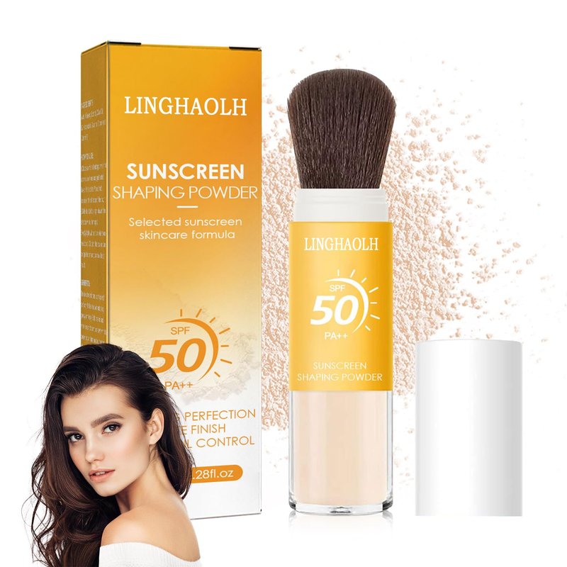 Sunscreen Setting Powder Brush SPF 50 PA++,Matte Translucent Loose Setting Face Powder,Brush On Powder Sunscreen for Face,Long Lasting Oil Control Mineral Brush Makeup Setting Powder