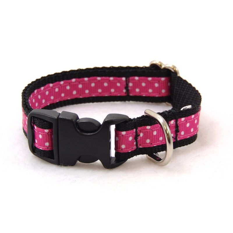 Sunset Polka Dot Pink/Black Dog Collar (Sm-5/8 x8-14")