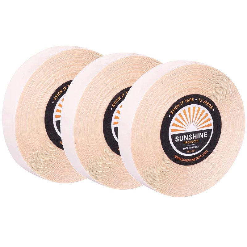 Sunshine Tape 3 Pack Stick It Wig Adhesive Tape Roll - 1/2" x 12 YDS - Double Sided, Medical Grade - Toupee and Wig Tape