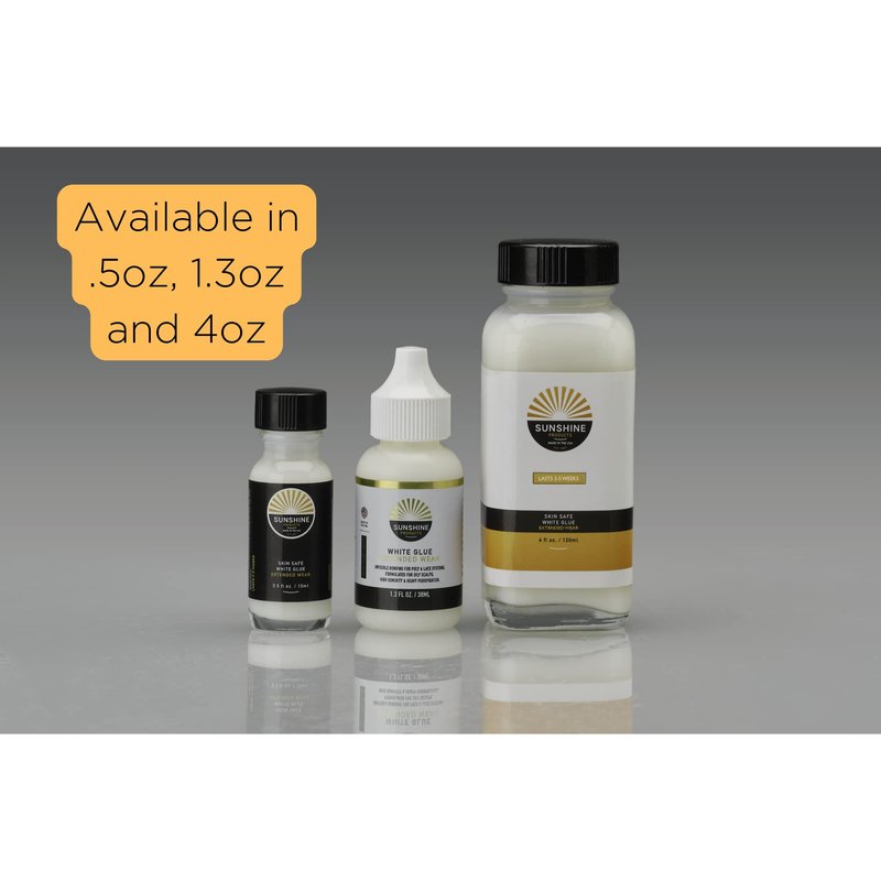 - DURABLE HOLD: Our industry leading Sunshine extended wear white glue is formulated to withstand the wear and tear of daily life for up to 3-5 weeks