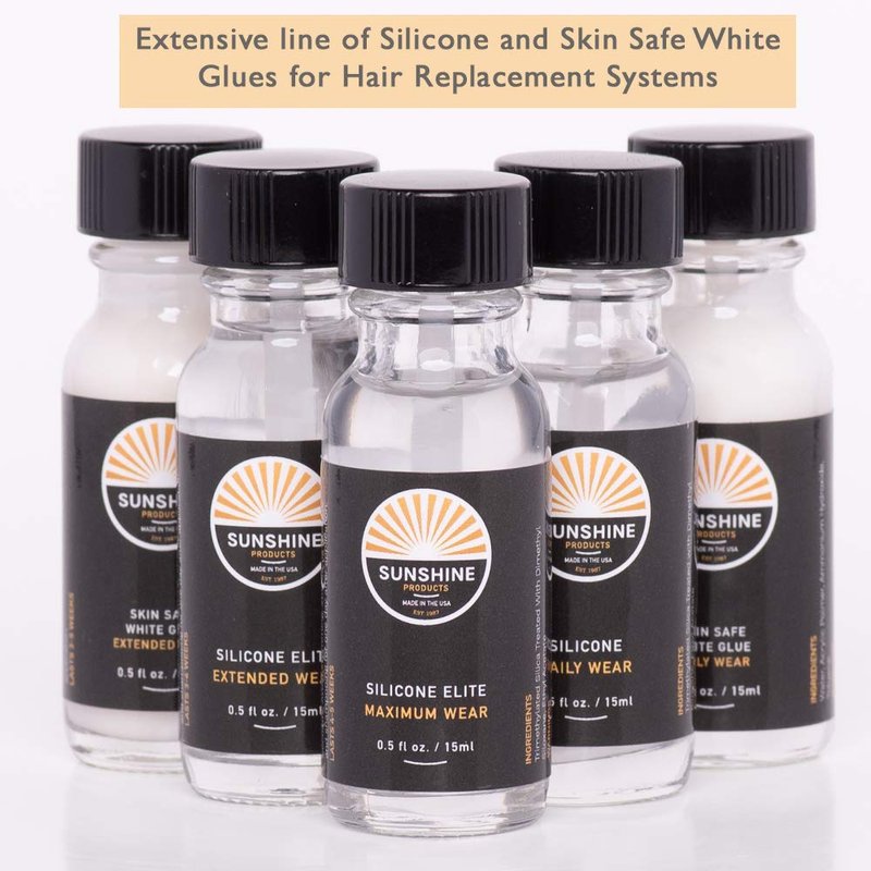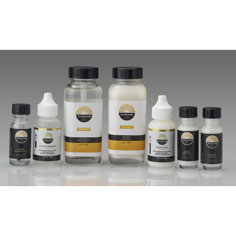 Sunshine's Extended Wear White Hair Replacement Adhesive is a powerful wig glue that is designed with skin safe ingredients to provide a strong and durable 3 to 5 week hold. Perfect for lace bases, skin and poly perimeters on lace or monofilament bases.