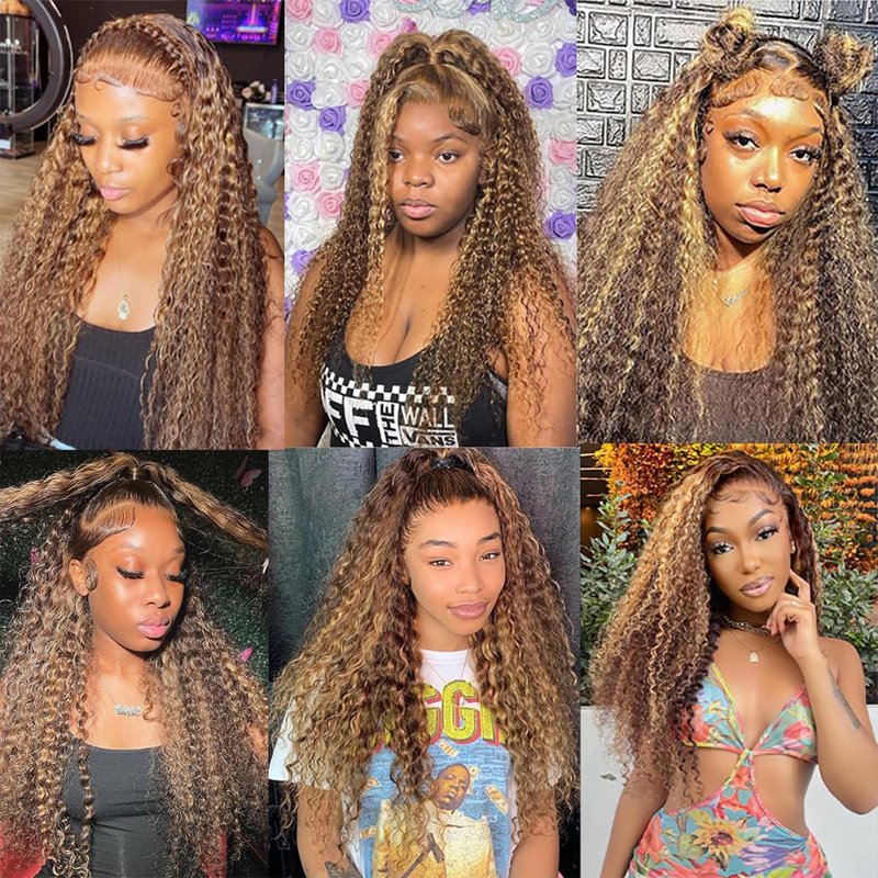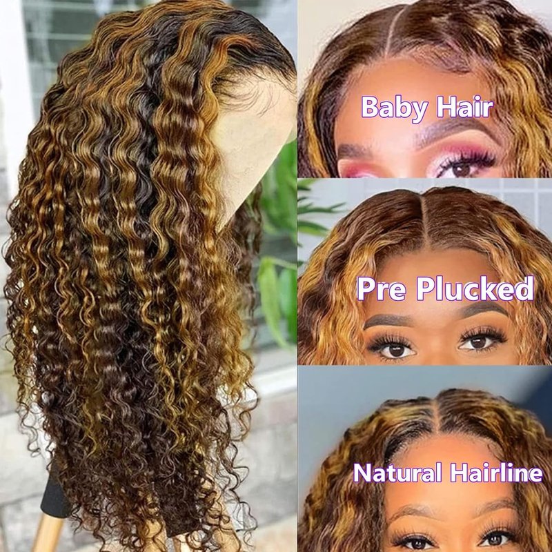- 【Deep Wave Lace Front Wigs Human Hair Details】:100% human hair, 150% Density, Highlight Ombre Color, breathable, not sultry. Wigs are easy to comb and suitable for beginners. The wig is full and thick, the lace is comfortable and breathable, invisible. Can Middle Part, Side Part or Free Part.