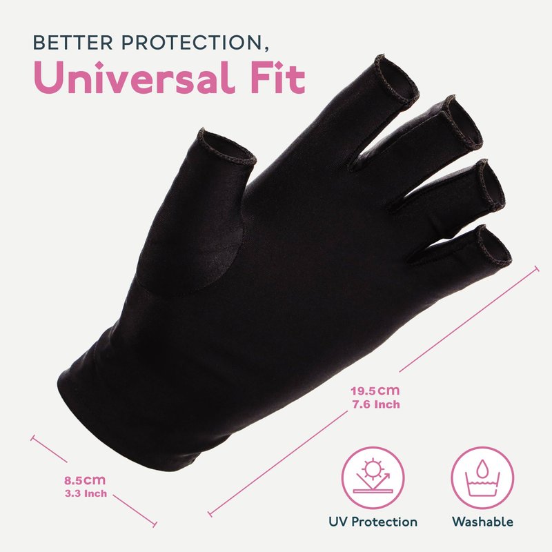 - Professional-Grade Fingerless Design: Tailored for professionals and home users, the fingerless design of these UV gloves ensures maximum flexibility and functionality. Nail technicians will appreciate the comfortable yet protective nature of these gloves during gel nail applications.