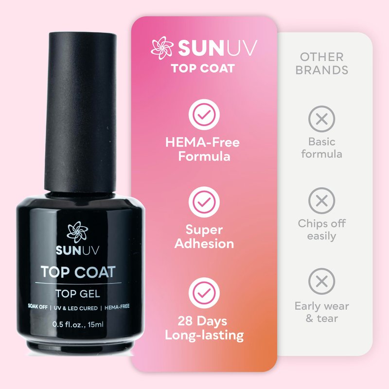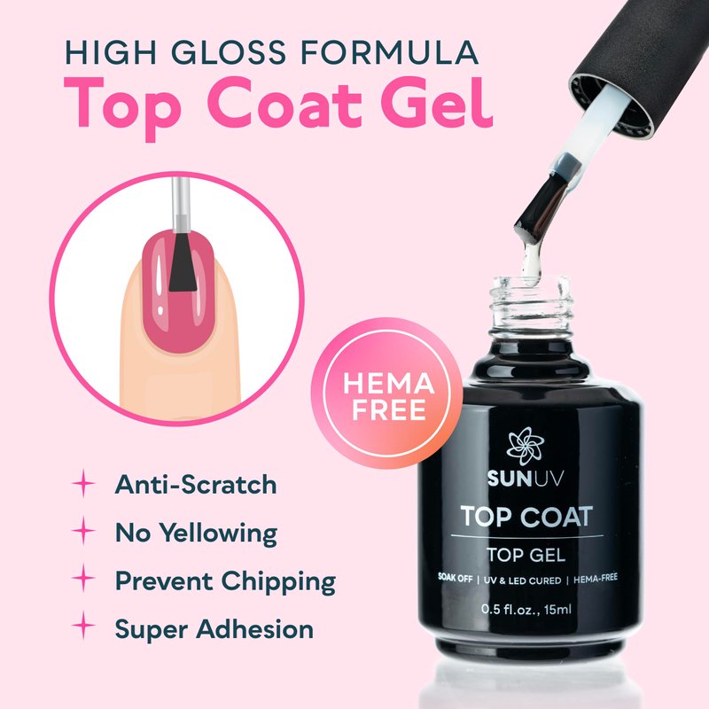 - SUNUV No Wipe Top Coat and Base Coat: 2 Pcs 15ml bottles glossy no wipe top coat and base coat