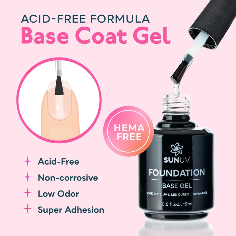 - No Wipe Foundation: Cure with a SUNUV UV light for nails for about 60-90 seconds to dry base coat or top coat