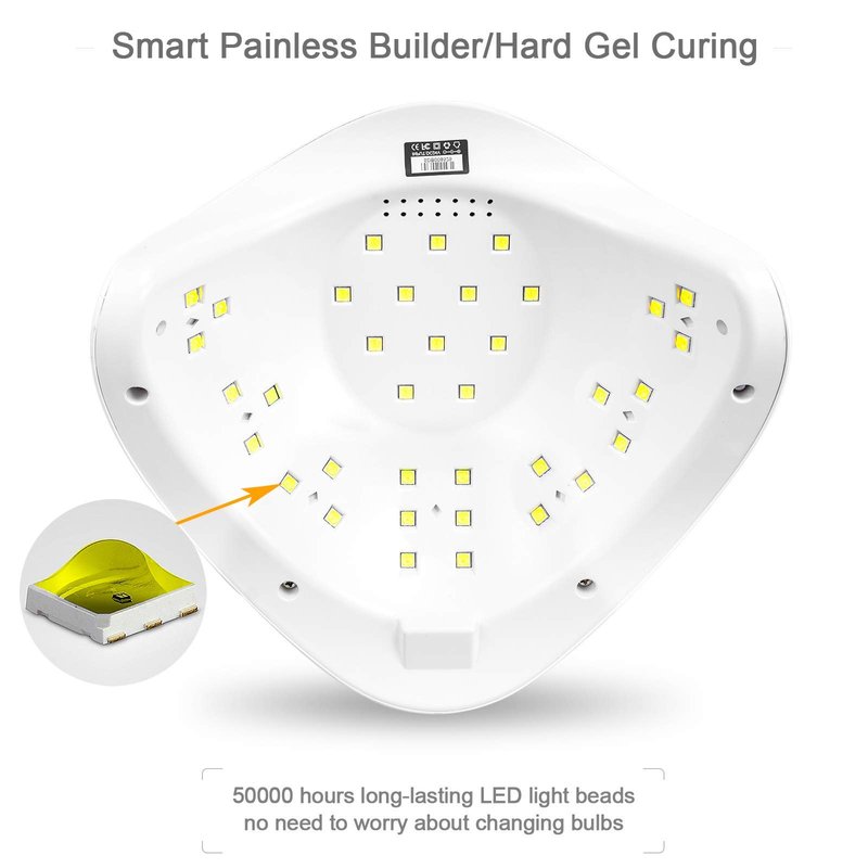 - Smart Painless Builder Hard Gel Curing: unique 99s LOW HEAT MODE is more suitable for curing builders, hard gels. The power enhances gradually during this mode to protect your tender skin from pain when curing gels. Comparing to the traditional purple light nail lamp, this soft closer white lights does no harm to the eyes. Let’s enjoy the comfortable nail art!