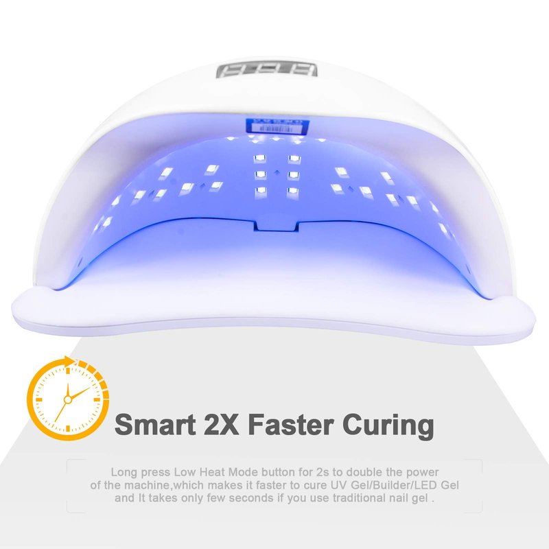 - Cure 2X Faste: Double Power button offers cure speeds up to twice as fast as standard UV LED nail lamp—a full cure takes just 30% of traditional nail lamp.
