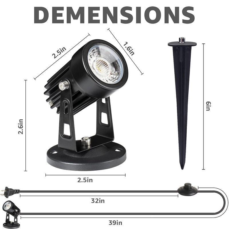 - 【Easy Installation】Variable choices. Comes with mounting base and stake, our led spotlight can be mounted on the wall/ceiling, or it can be inserted into the ground using the stake.