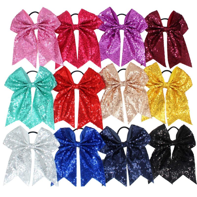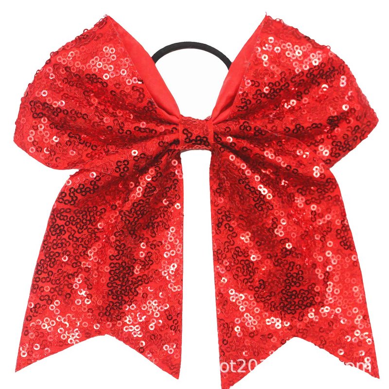Sunvy Sparkly Sequin Glitter Hair Bows With Rubber Bands 7.5 Inch Big Bows Hair Ties Hair Accessories for Women Girls Kids Chidlren (Red)