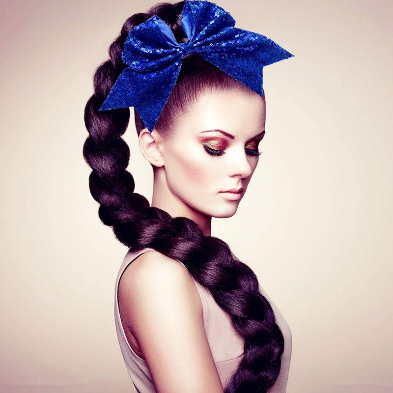 - The bling women girls children bows are made of double layer glitter Polyester material,size approx 7.5 inch.Perfect ,large size baby girls hair accessories.100% handmade.