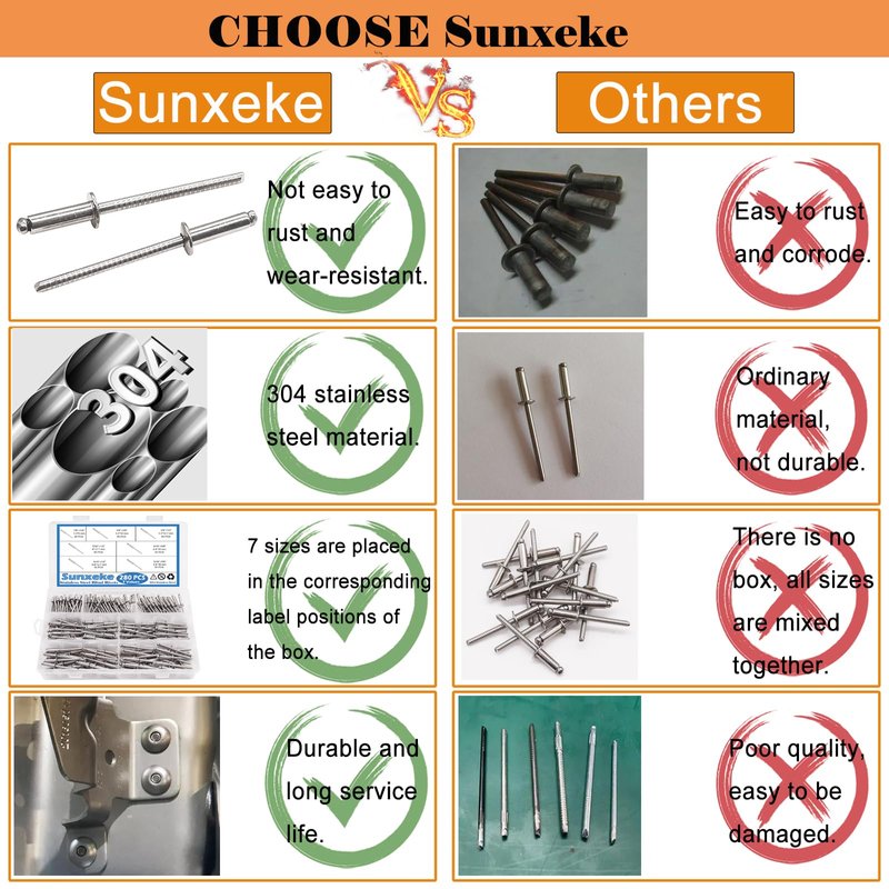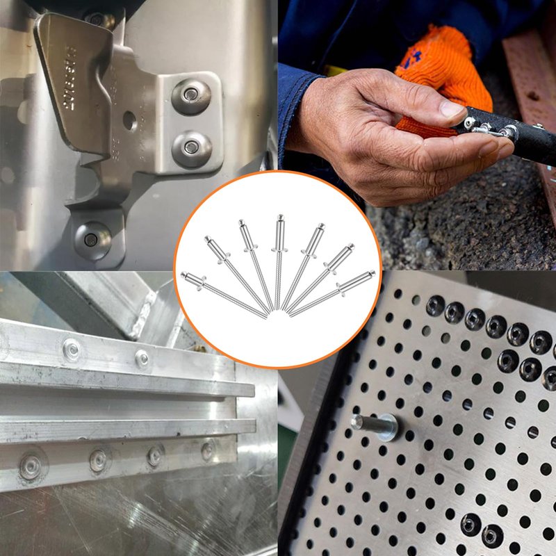 - 【Features】Our rivets are made of stainless steel, which have high corrosion resistance and acid resistance, and are durable. When installed, you will no longer worry about their rust and fracture.