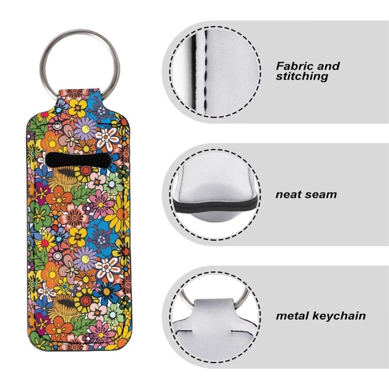 Suobstales Hippie Flower Travel Bottle Holders Chapstick Keychain Set of 3,Colorful Cartoon Floral Lipstick Holder+Hand Sanitizer Keychain Holder+Hand Wrist Lanyard for Women Gifts Portable Pouch