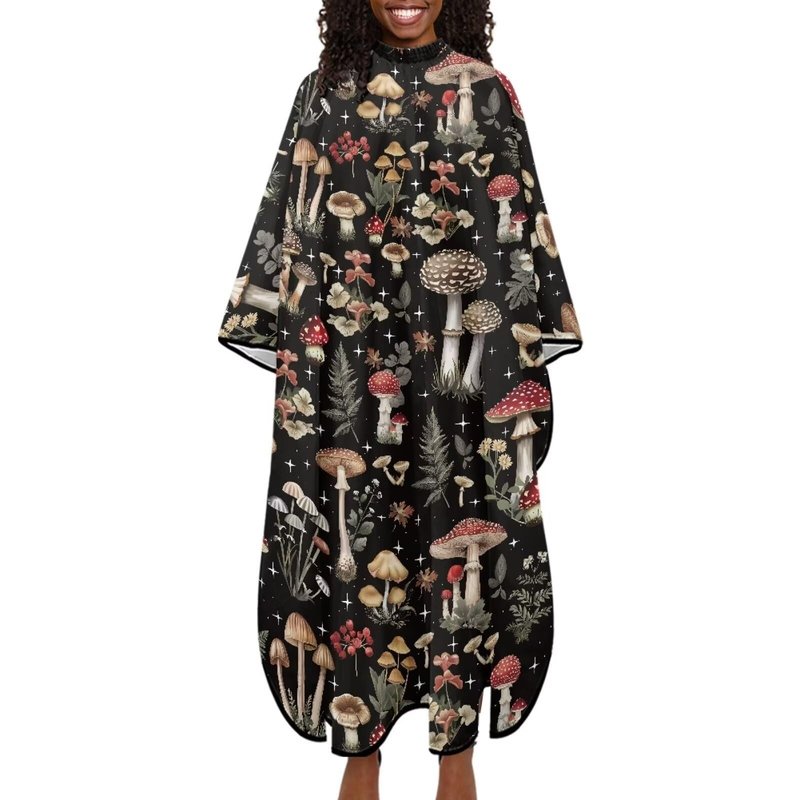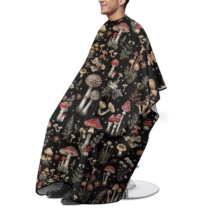 Suobstales Mushroom Leaf Print Waterproof Hair Salon Cape Professional Barber Cape with Adjustable Snap Closure Hair Cutting Cape for Adults Water Resistant Hairdressing Cape 56.7" x 66.9"
