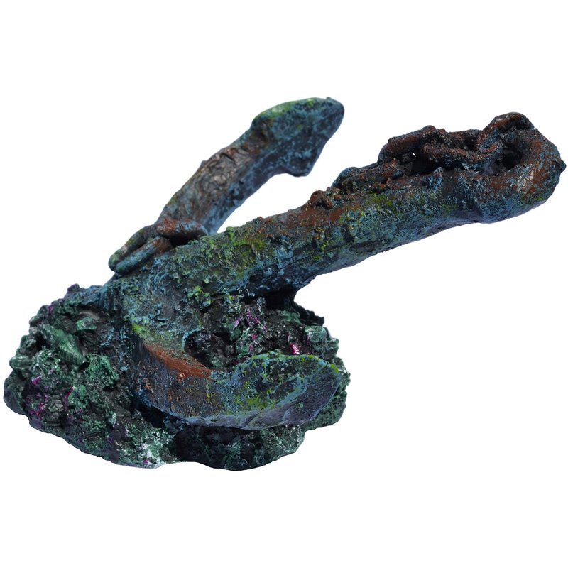 Supa Anchor On Rock Aquarium/Fish Tank Ornament | Realistic Detail | Approx. 15cm(L) x 13cm(W) x 9.5cm(H)