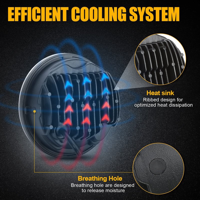 - 【PREMIUM AND DURABLE MATERIAL】Made of aluminum housing with black painted and PC lens, shock and vibration resistant, maximum protection for led headlight from minor abrasions and slight scratching. Dustproof and Waterproof IP67. Heat sink design for efficient cooling, extends the lifespan over 50000hrs.
