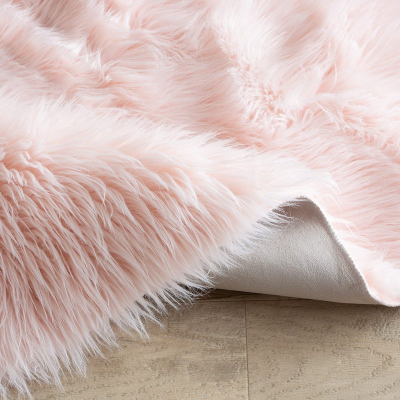 Super Area Rugs Ultra Soft & Fluffy Faux Sheepskin Rug, Light Pink 2 x 3 Feet Carpet for Bedroom Living Room