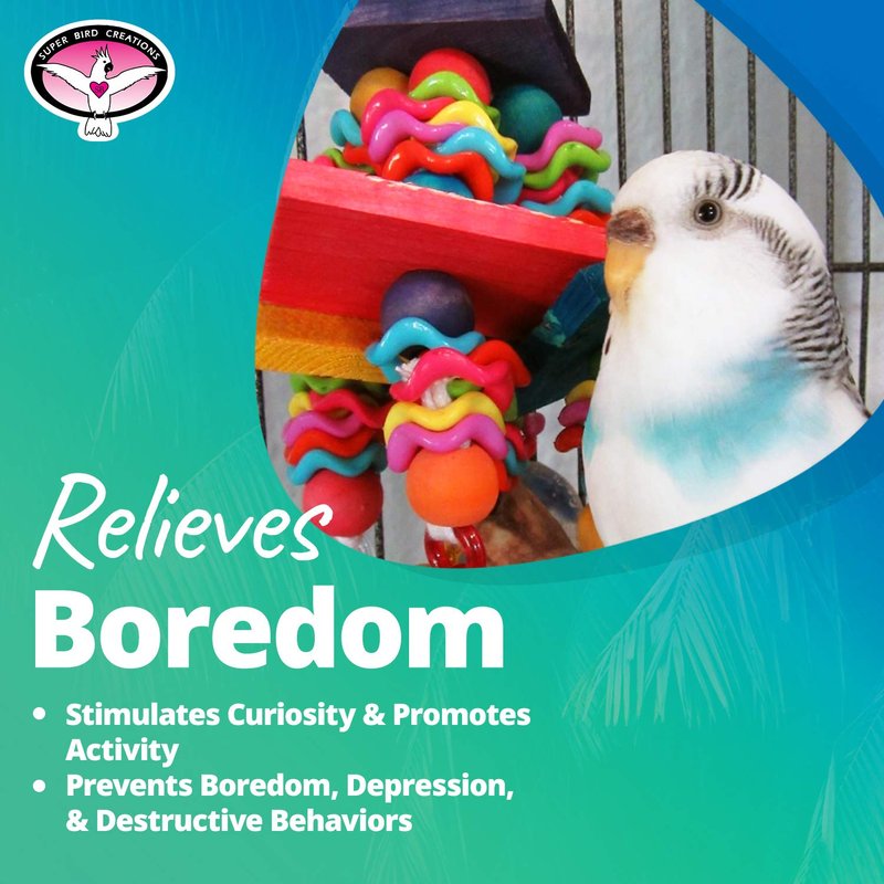 - BANISHES BOREDOM: Super Bird Creations parrot toys are "Playthings with a Purpose." They effectively combat boredom, depression, aggression, and destructive behaviors by stimulating physical activity, curiosity, and mental engagement in your feathered friend.