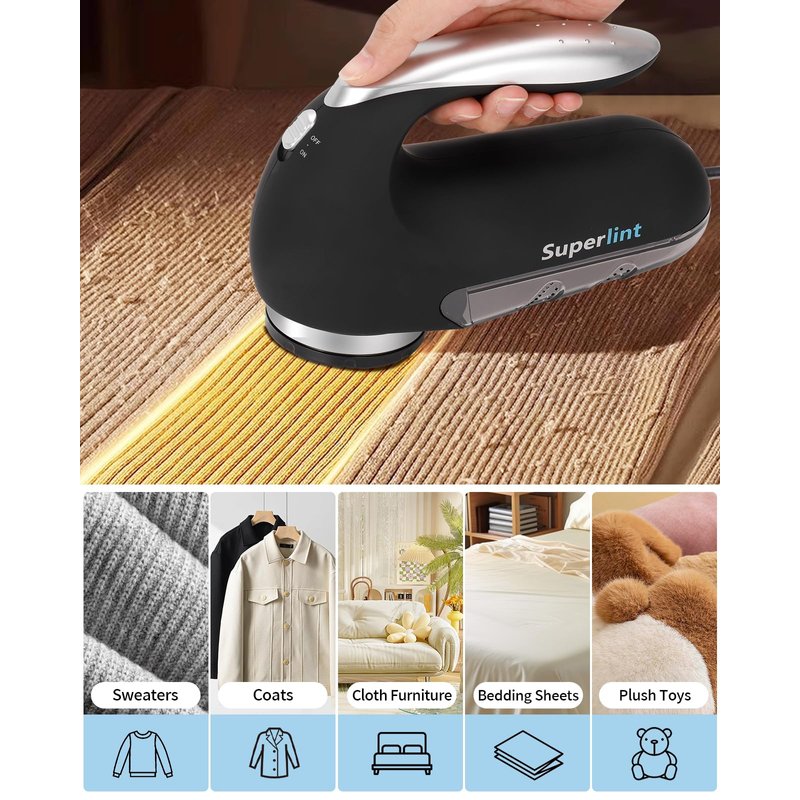 SUPER LINT Best Rated Electric Sweater Shaver Best Fuzz Pill Bobble Remover for Fabric Fleece Curtains Clothes, Black & Silver