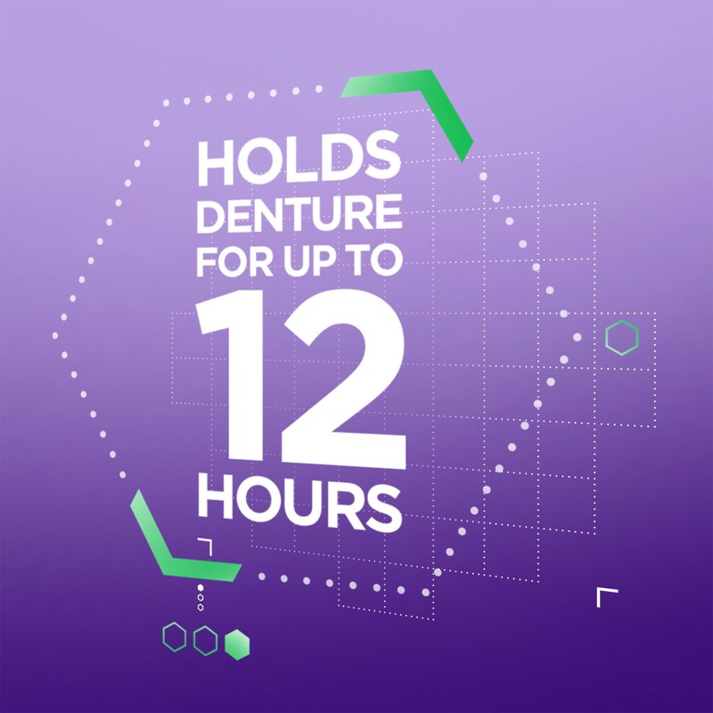 - Super Poligrip Comfort Seal Denture Adhesive Strips offer a strong 12 hour hold and seal out up to 74 percent more food particles (versus no adhesive after 1 hour on a lower full denture)