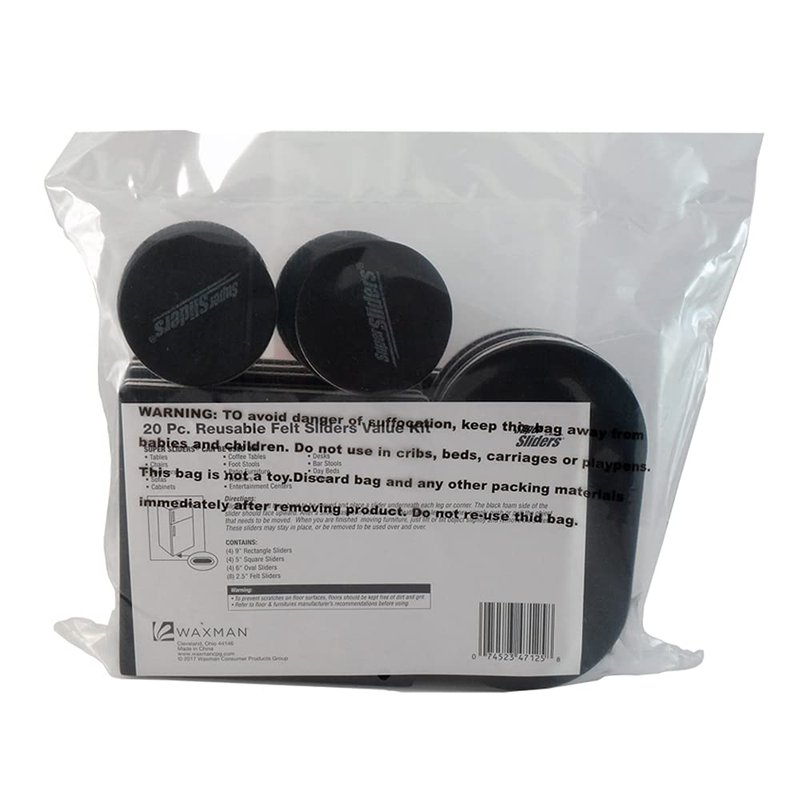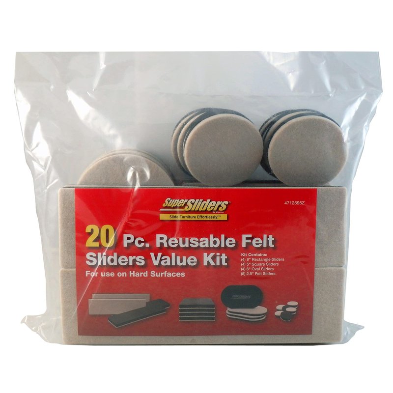 Super Sliders Assorted Reusable Felt Furniture Sliders for Hard Surfaces, Beige (20 Pack)