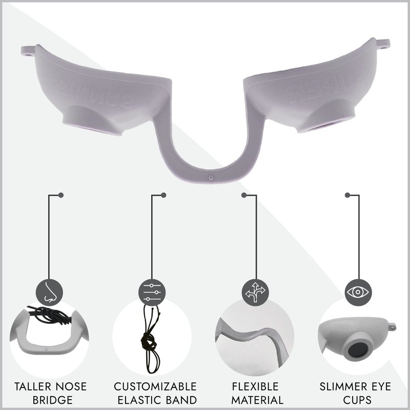 - EVO EYESHIELDS: Super Sunnies tanning goggles have offered uncompromising protection for your eyes both indoors and outdoors. This Evo Tanning Eyewear has a flexible high-rise nose bridge to eliminate tan lines. The tanning glasses have an elastic headband to assure the perfect fit which accommodates any facial structure.