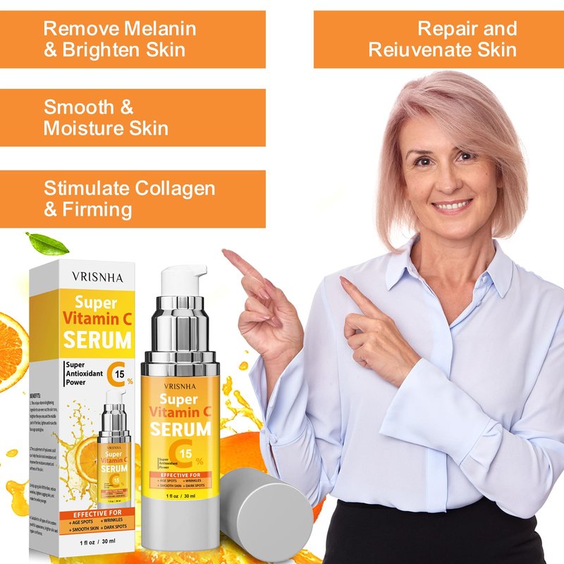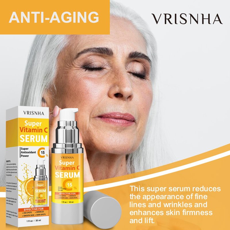 - Premium Vitamin C Face Serum: A powerful anti-aging formula designed specifically for women over 50, packed with ingredients like Vitamin C, Hyaluronic Acid, Peptides, Vitamin E.