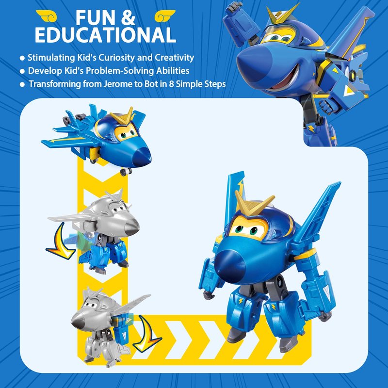 - Super Fun for Preschool Kids - Super Wings 5” transforming Jerome toy airplane is made for preschool Super Wings fans who are over 3 years old. Jerome can transform from toy airplane to bot in just 10 easy steps and no batteries are required for this super wings toy, so there is no worries about the power shortage that kids can have fun anytime and anywhere.