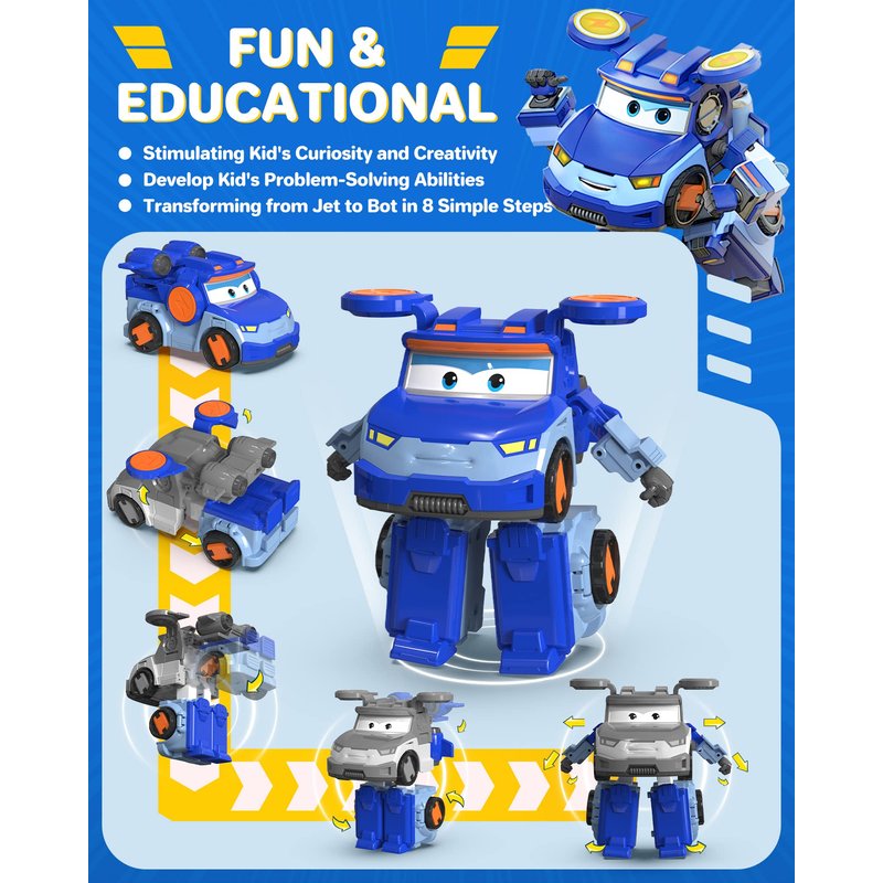 - This toy plane rolls on real working wheels and transforms into a poseable robot in 10 easy steps. The challenge is fun for kids all ages. Watch as they master the transformation and reenact their favorite missions from the popular preschool TV show -- Or create their own new rescue adventures with their imagination!