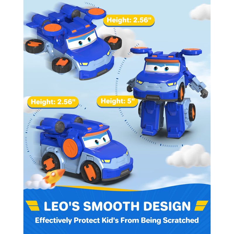 - Leo's here, there, and everywhere! This speedy new member of the Super Wings team is an electric car who can transform into a plane! With Leo's high-tech speed, delivering packages to friends around the globe is a snap for the Super Wings.