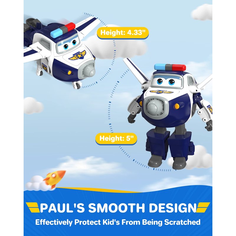 - Perfect for Preschool Kids - The 5" figure transforms from plane to bot in just 10 easy steps and features real working wheels. The transformer Paul is a perfect birthday & holiday gifts for your kids, especially 3+ year olds kids who love pretended playing with a favorite plane toy to explore new places. Airplane toys will be sure to keep them happy playing as their imagination soars.